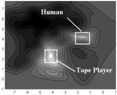 The goal of this work is to build a robot that can autonomously explore the soundscape, and discover knowledge that will allow it to enhance other auditory applications. This work currently consists of three parts: (1) discovering source locations with the auditory evidence grid; (2) building models of source directivity; and (3) estimating the volume of noise due to these sound sources found throughout the environment. This work was performed in part at the Navy Center for Applied Research in Artificial Intelligence, in cooperation with Alan Schultz. |