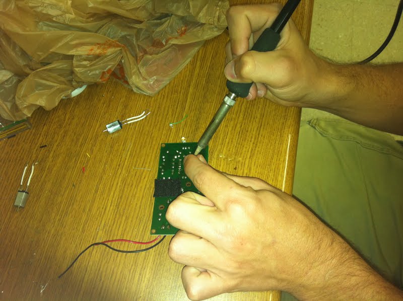 Prepare the sensors for attachment by adding wires to carry the detection signal, power lines, and a surface by which to attach the board.