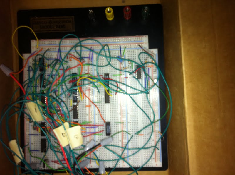 Next we will construct the state machine that drives the logic of the device. Click here for the full schematic. The final result will look something like this.