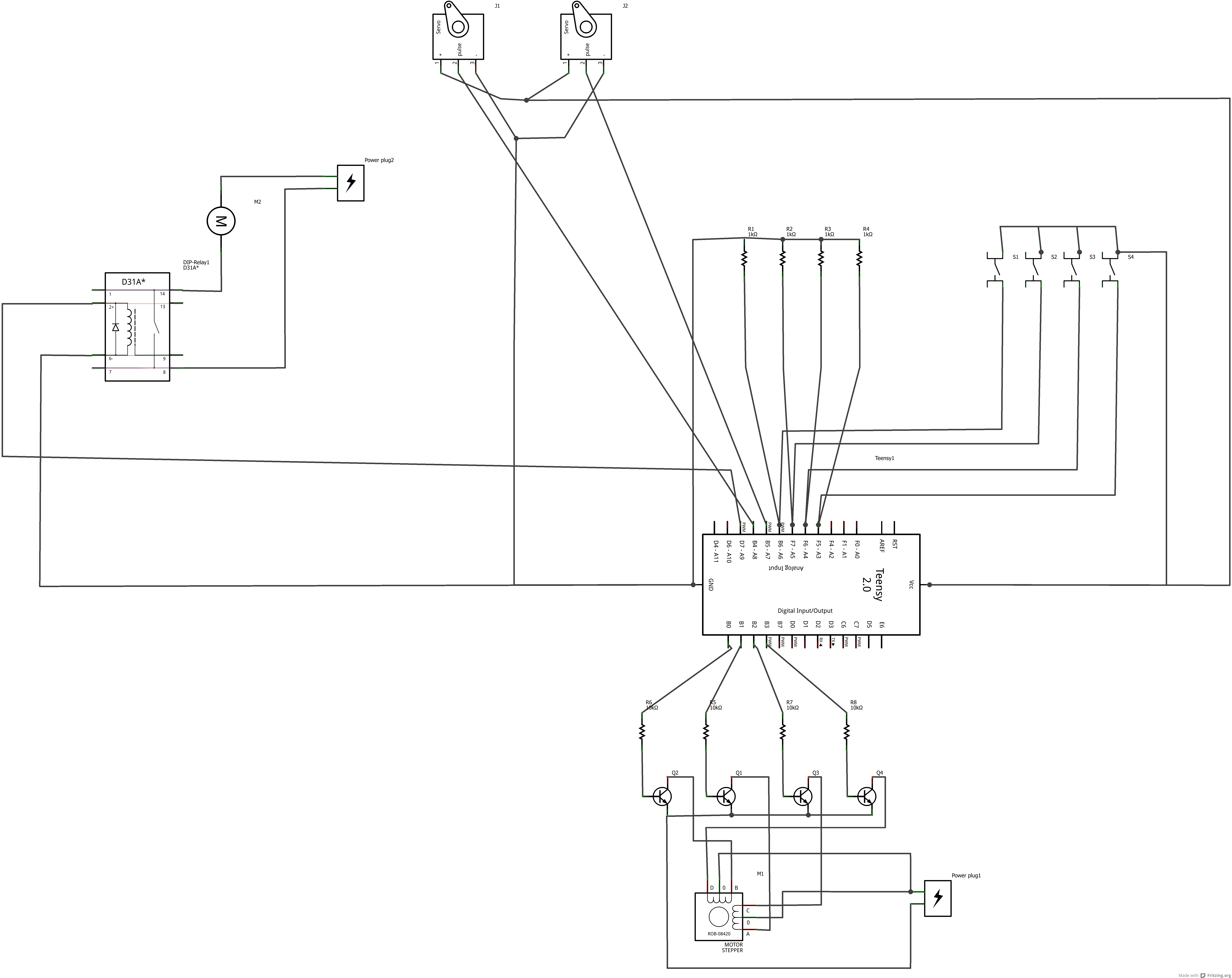 Our circutry consists of the four switches and pull down resistors, four MOSFETs to control the stepper motor, one relay to control the fan, and the Teensy microcontroller to control everything. Here is an image of our circut diagram.