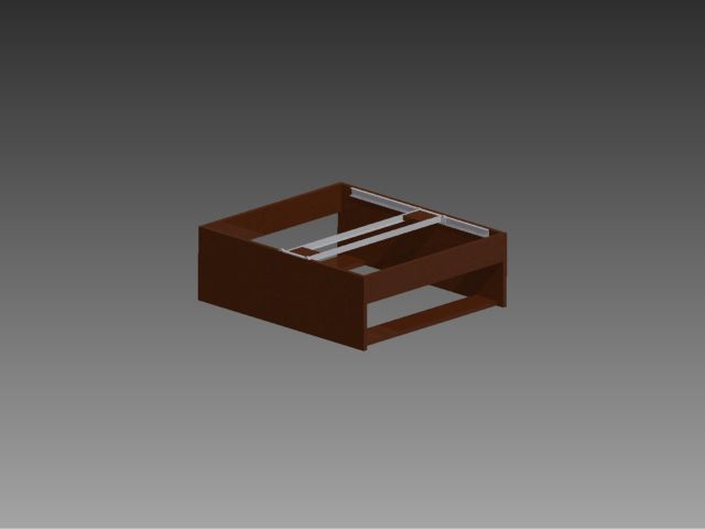 The design of our system is fairly simple. The first step is cutting the 4'x2'x6" Fiber board into the four 20"x3"x0.5" pieces and the two 8"x24"x0.5" pieces. These comprise the two walls and the support beams of the system. The four support beams should be attached with two horizontal against the ground and flush with the outside edge of the box, and two verticle mounted flush to the top of the structure. After putting the box together, the next step is adding the drawer rails to the inside of the box. To prep the rails before inserting them be sure to remove the wheels from the sides of all four rails so they may be used later. Also take note to flatten the notches in the rails where the wheels are intended to "lock" in place