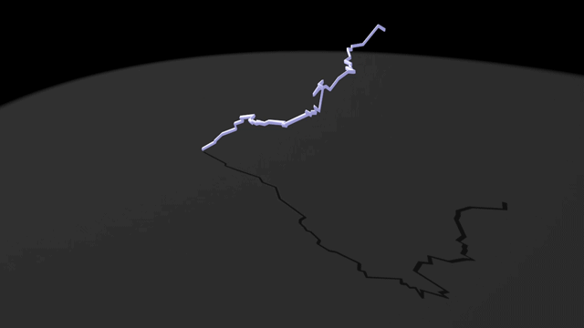 Our subject is a lightning bolt, effectively a 2 dimensional line moving through a 3 dimensional space. This is a particularly striking example because it allows us to see the twists that look like a simple reversal to one image alone. The pictures were taken at practically the exact same moment, showing the full lightning bolt as it travels to the ground. The pictures were taken from a similar enough vantage point that we can assume that the angular displacement is small compared to the distance. One picture is however much higher than the other, so our stereoscopic displacement will be in the Z plane. This allows us to simplify our function and assume that when a point shifts position in the image, it is proportional to the distance to each camera. We won’t be able to know the proportionality factor through this method, meaning that we are only able to know the relative shifts without having absolute data. Calculating the disparity (in our case the z point), we simply take a point on the left image (x1, y1) and compare it to a point on the right image (x2, y2) and subtract the y values (due to the vertical displacement). This will result in list a points with X, Y, and Z coordinates. This can be plotted in a 3D modelling program (in my case using Python in Blender).