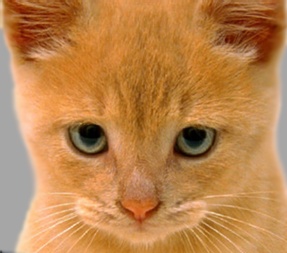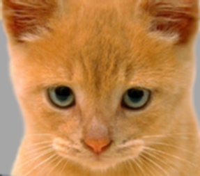 The hybrid image generation algorithm was first tested with images of a cat and dog, where the high frequencies were taken from the cat and the low frequencies were taken from the dog. The figure below shows the resulting hybrid image: