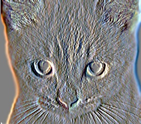 To verify correct operation of the filtering algorithm, a set of six different filters was applied to an image of a cat, including the following: