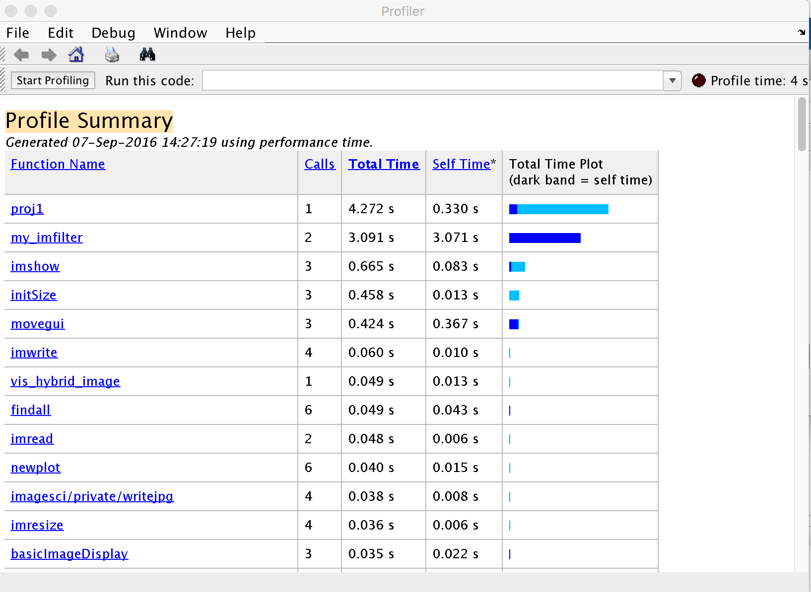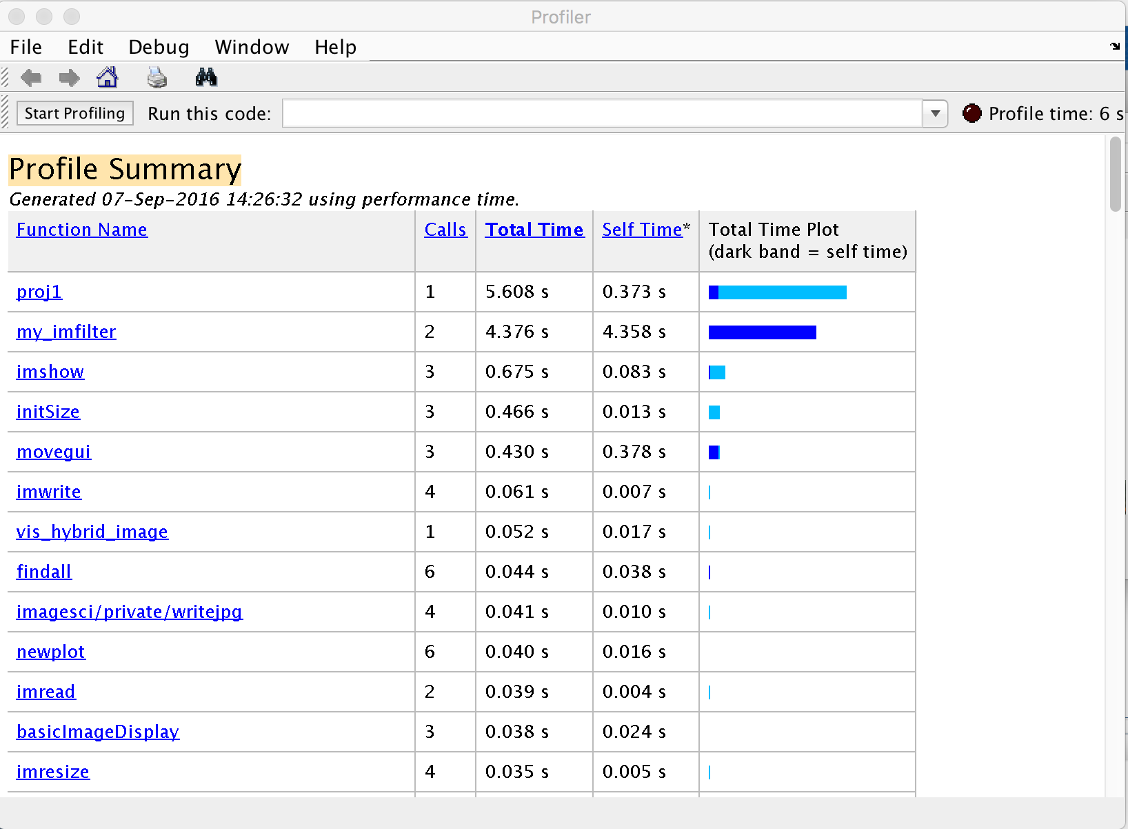 We used Run and Time in Matlab to measure how the improved implementation fared against the original.