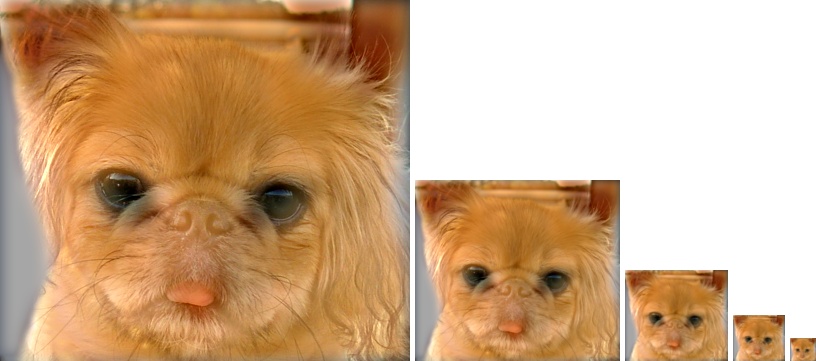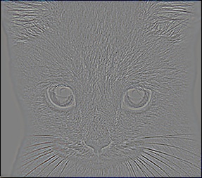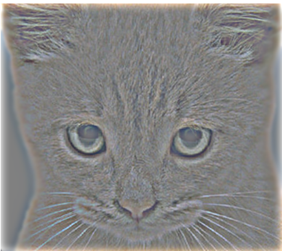 One small note of analysis is that hybrid images are effective only in certain situations. As mentioned Oliva and coworkers, the images need to be aligned, but the colors and structure of the two images need to provide a strong illusion. In some cases, it also matters which image has the high pass band filter applied. For example, the dog and cat hybrid image seen above uses the cat for high frequencies and the dog for low frequencies. In this situation, the cat has a smooth orange color skin that disappears after filtering because it is low frequency. If we instead had the dog filtered for high frequencies and the cat for low frequencies, the resulting hybrid image is not as convincing.