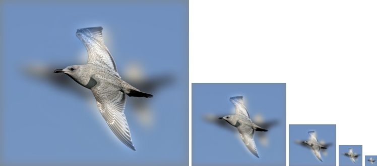 Similarly, hybrid images of Einstein/Marilyn (reversed), cat/dog, bicycle/motorcycle, bird/plane, and fish/submarine are also generated by the same procedure. Please enjoy the results in the following figures. The only parameter to change is the cutoff-frequency. Using binary search, optimum cutoff-frequencys are list in Table 1 at the bottom of this section.