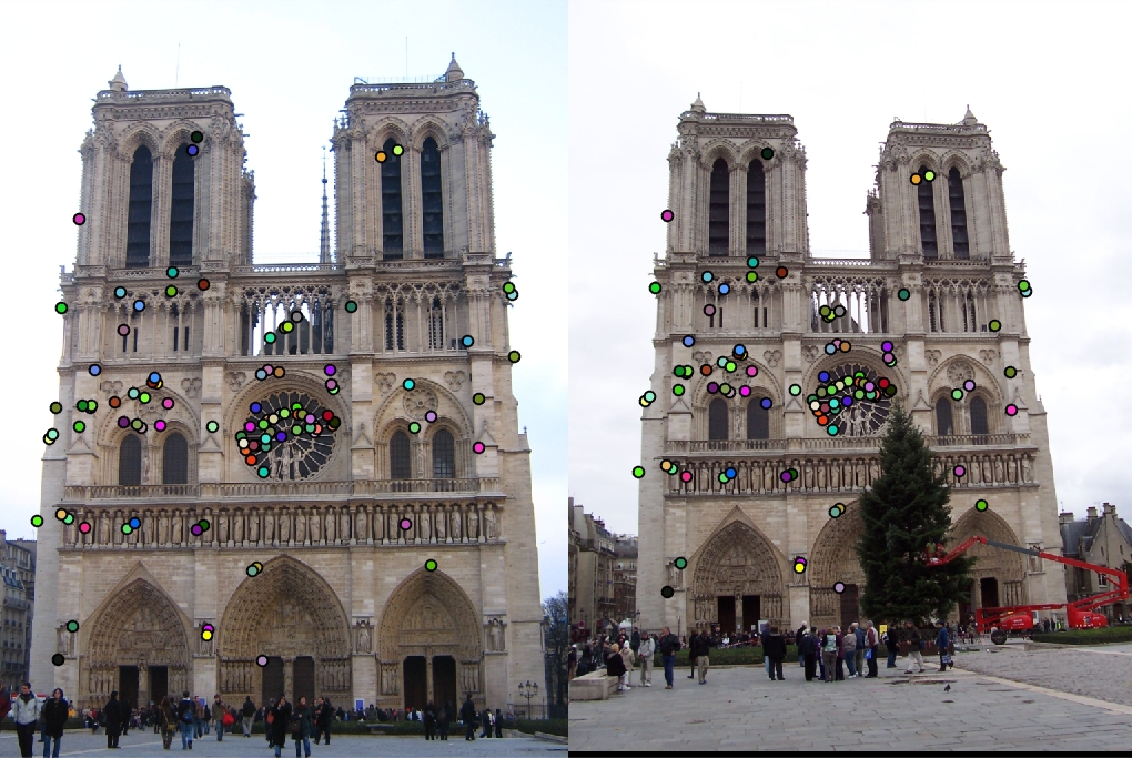 Detected keypoints on two images.