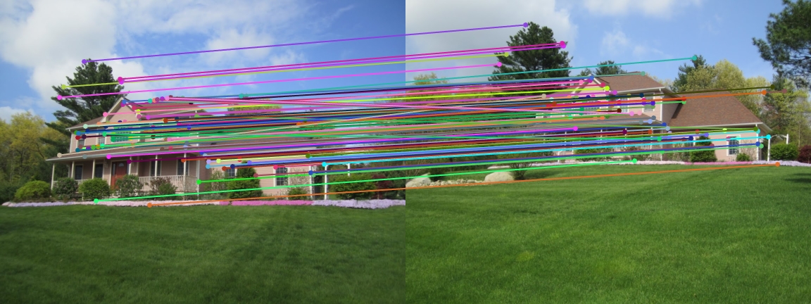 This project served as a basic introduction to the concept of image feature matching. We built an elementary version of the SIFT keypoint descriptor, based on keypoints found using the Harris Corner Detector. The process can be broken down into three main steps: keypoint detection, keypoint description, and keypoint matching. Each of these steps will be described in detail.
