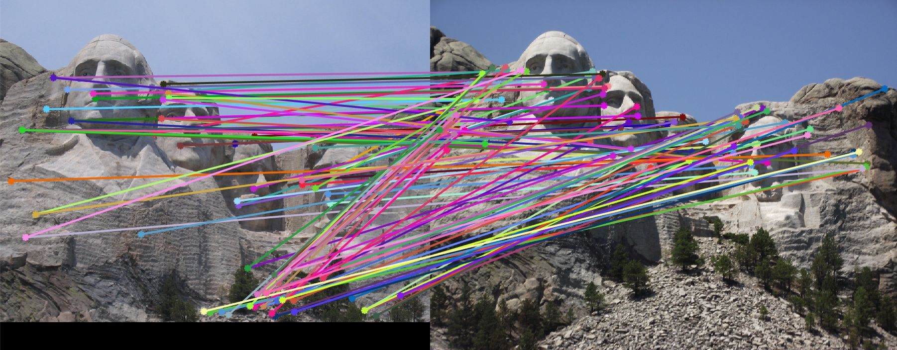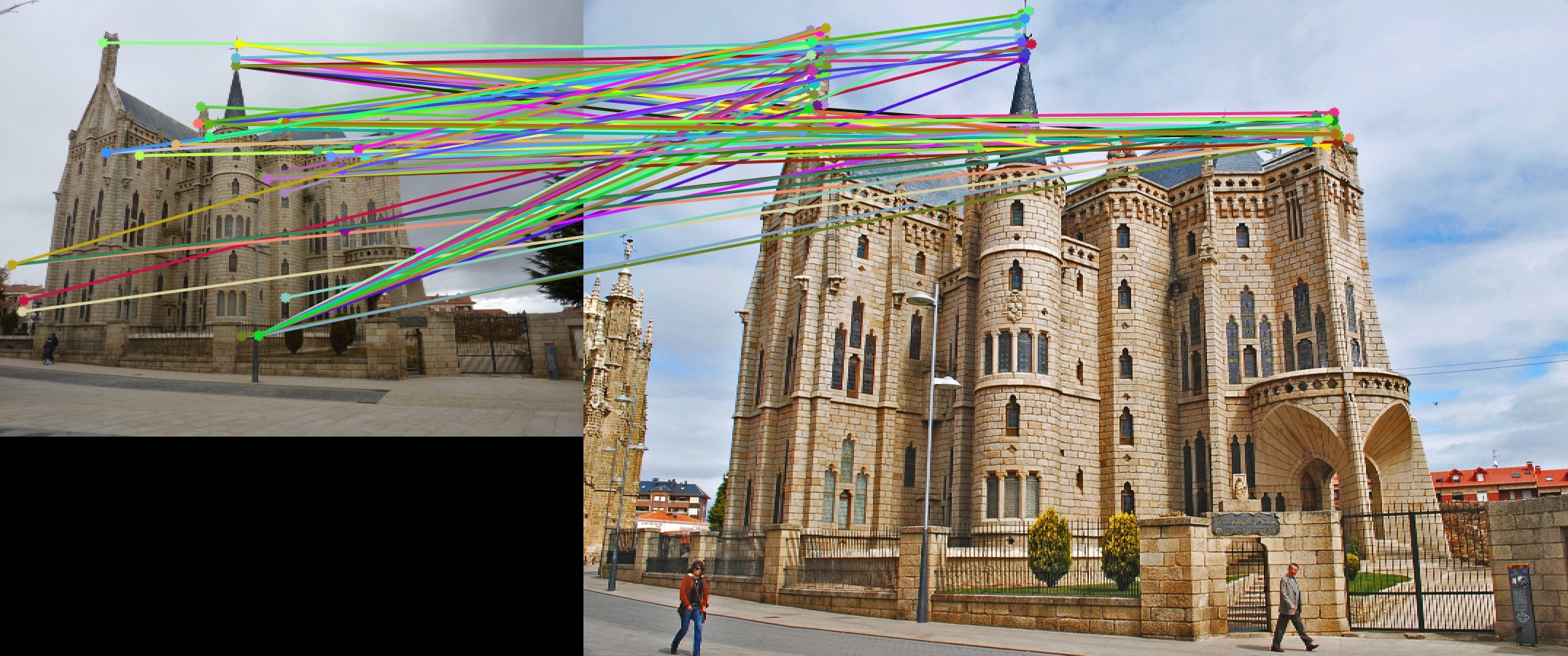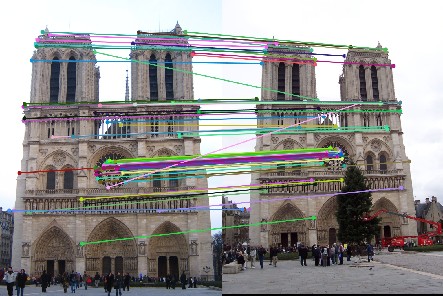 | Accuracy (at NNDR=0.8) | Accuracy (100 best) | Matching image (100 best) |