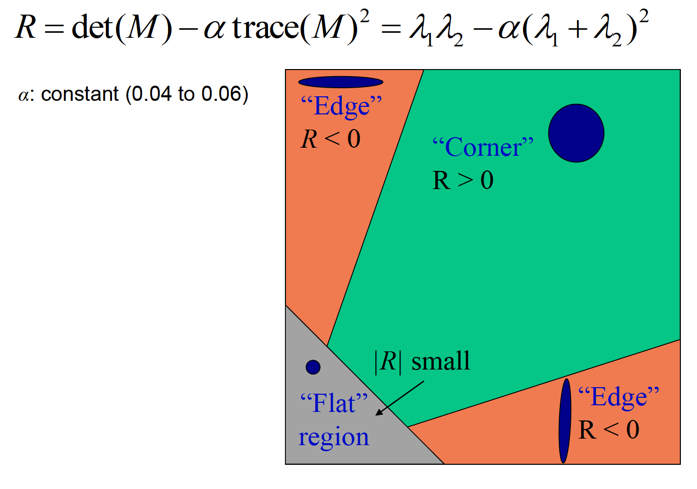 After transformation, eventually we compute a score using two eigenvalues of the matrix. If both eigenvalues are large or score is positive, we know that E increases in all directions so that the point is at corner.