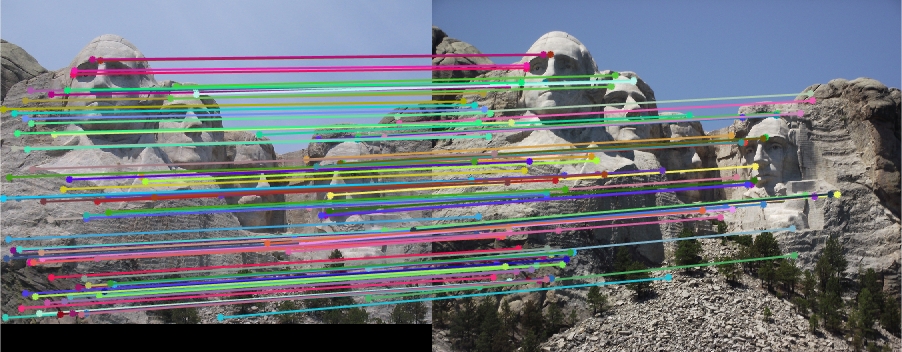 There are many parameters in our code that can be altered. For example, the Harris response value (R), the local maxima patch (3x3 or 5x5), the definition of local maxima (either maximum R or maximum value in the image matrix), and the no. of descriptors (n) returned by adaptive non-maximal supression (ANMS). Also, we can opt to use or not use ANMS. Some of the results are listed below.
