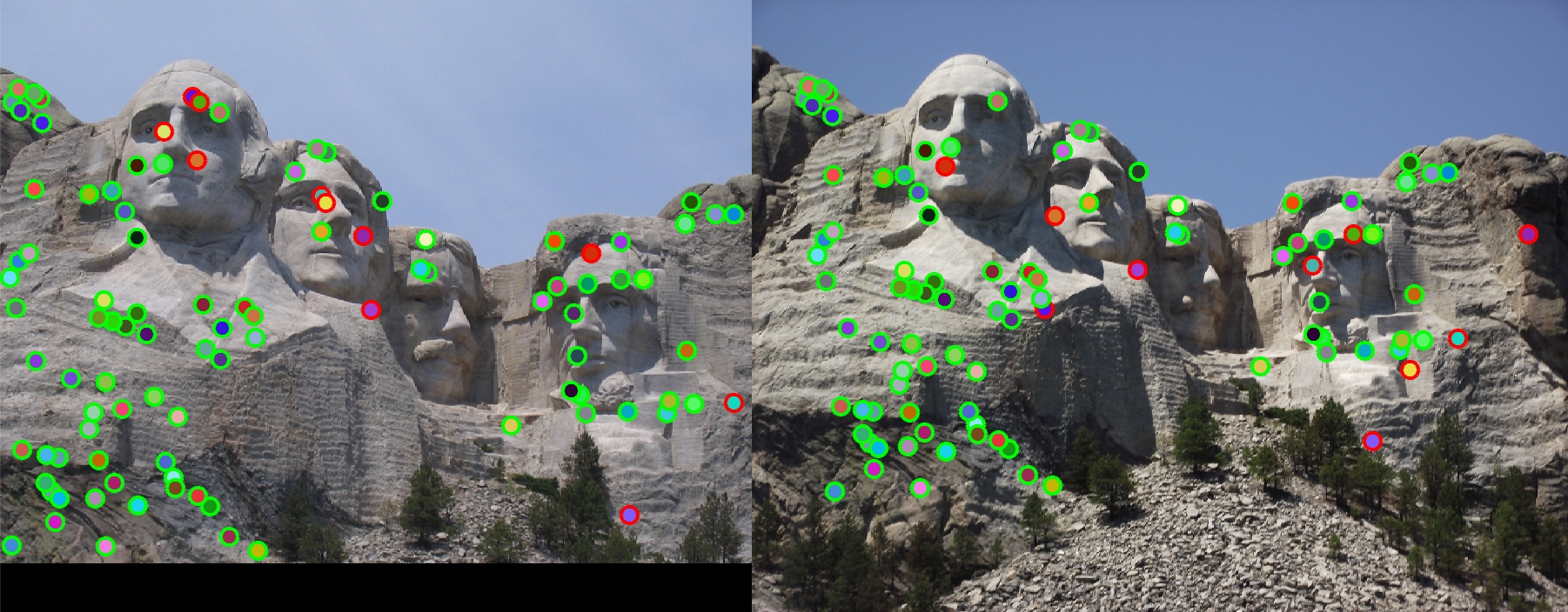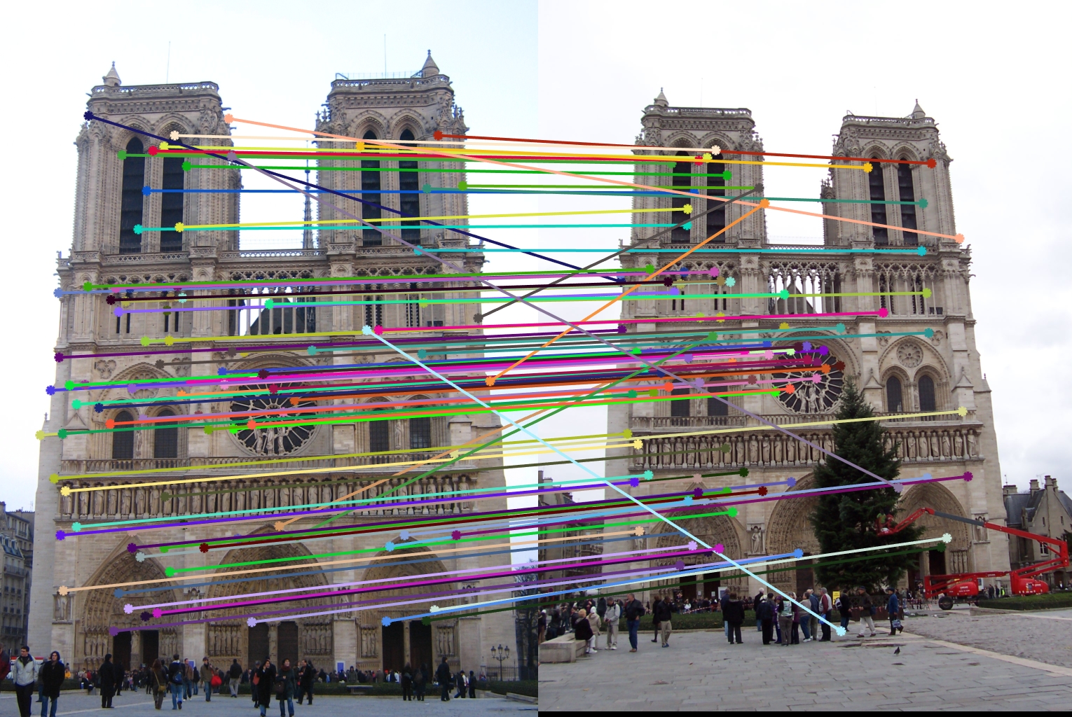 I had to play around with the sigma value of the second gaussian filter in get_features.m. I hypothesize that down scaled images require smaller values of sigma. So changing the sigma value from feature width to three fourth the value increased accuracy by about 10%. I started with a threshold equal to the mean of the values in the matrix but I received way too few values. Reducing the threshold to mean/6, however, increased the number of keypoints to greater than 100.
