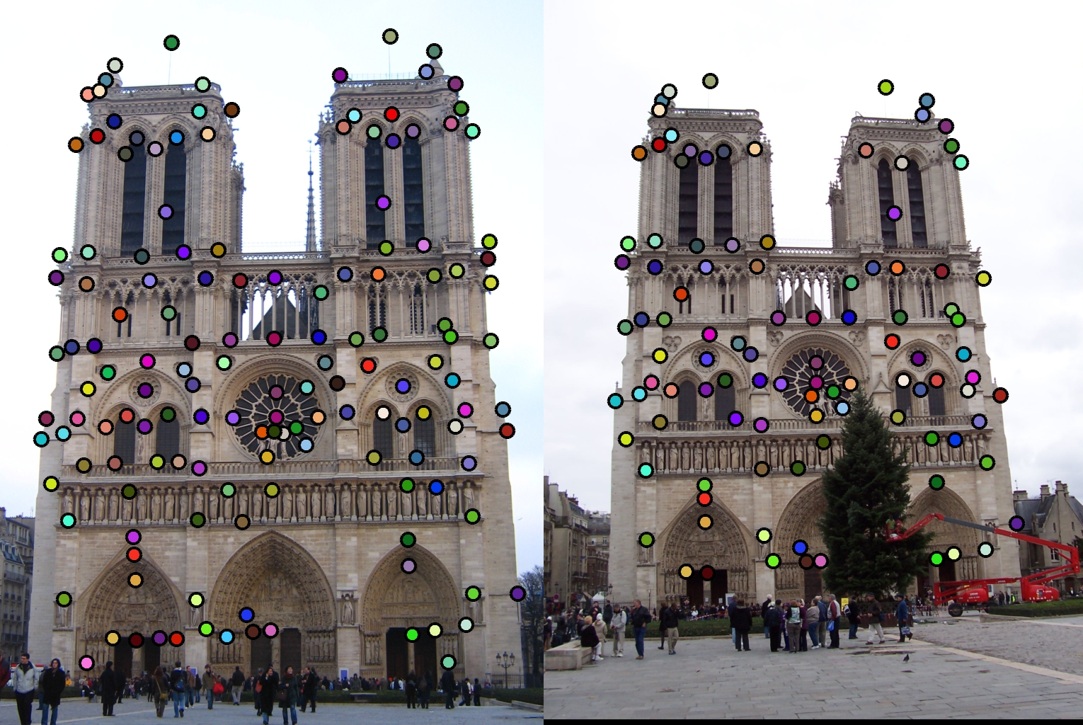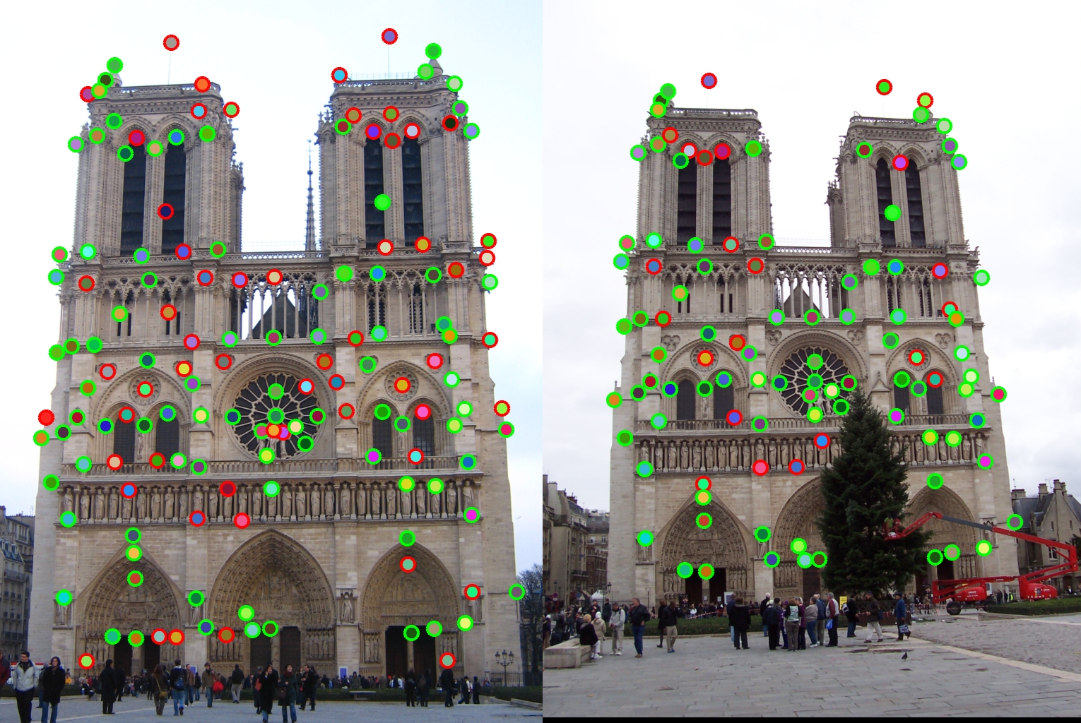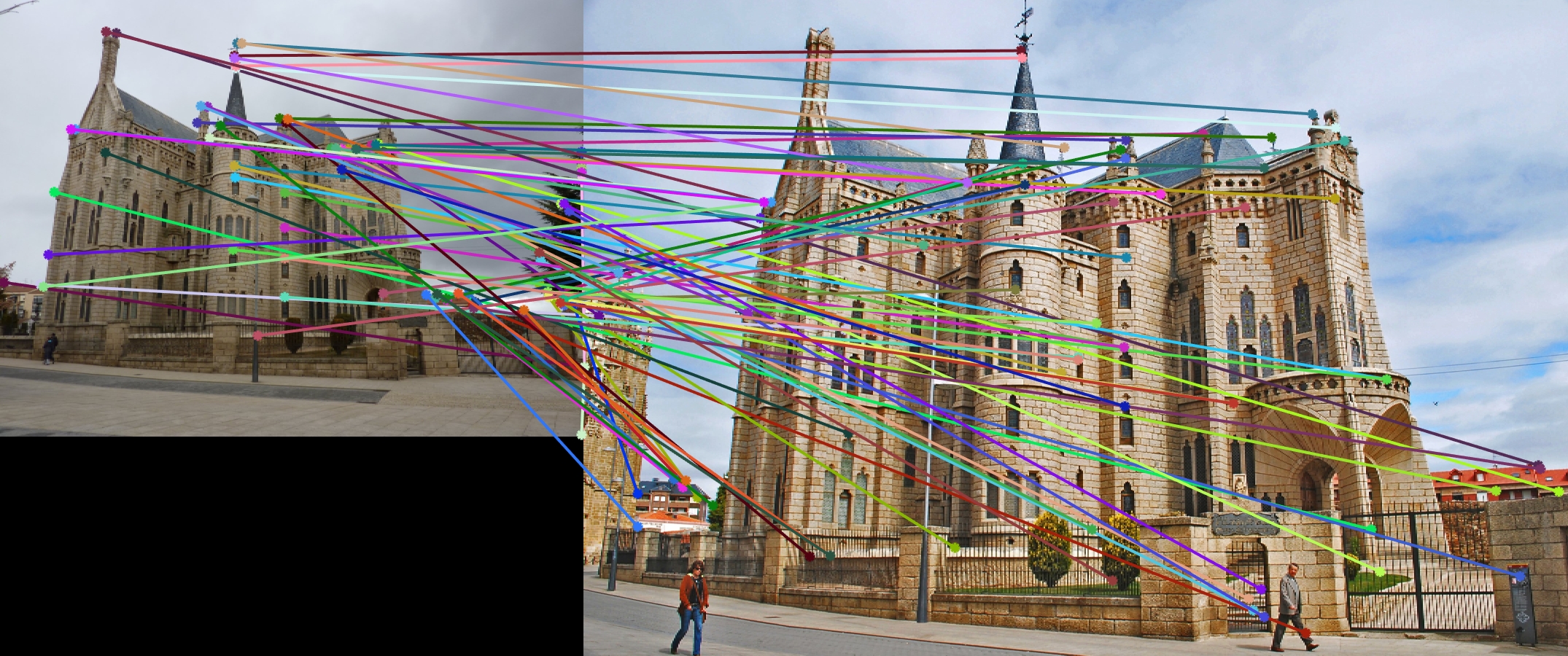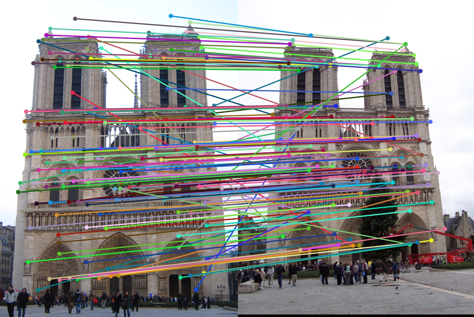 I implemented the "ratio test" or "nearest neighbor distance ratio test" method of matching local features as described in the lecture. Norm function made my program clear and faster. I used the norm function calculate the euclidean distance between two features and sort the final result which has with the most confident.