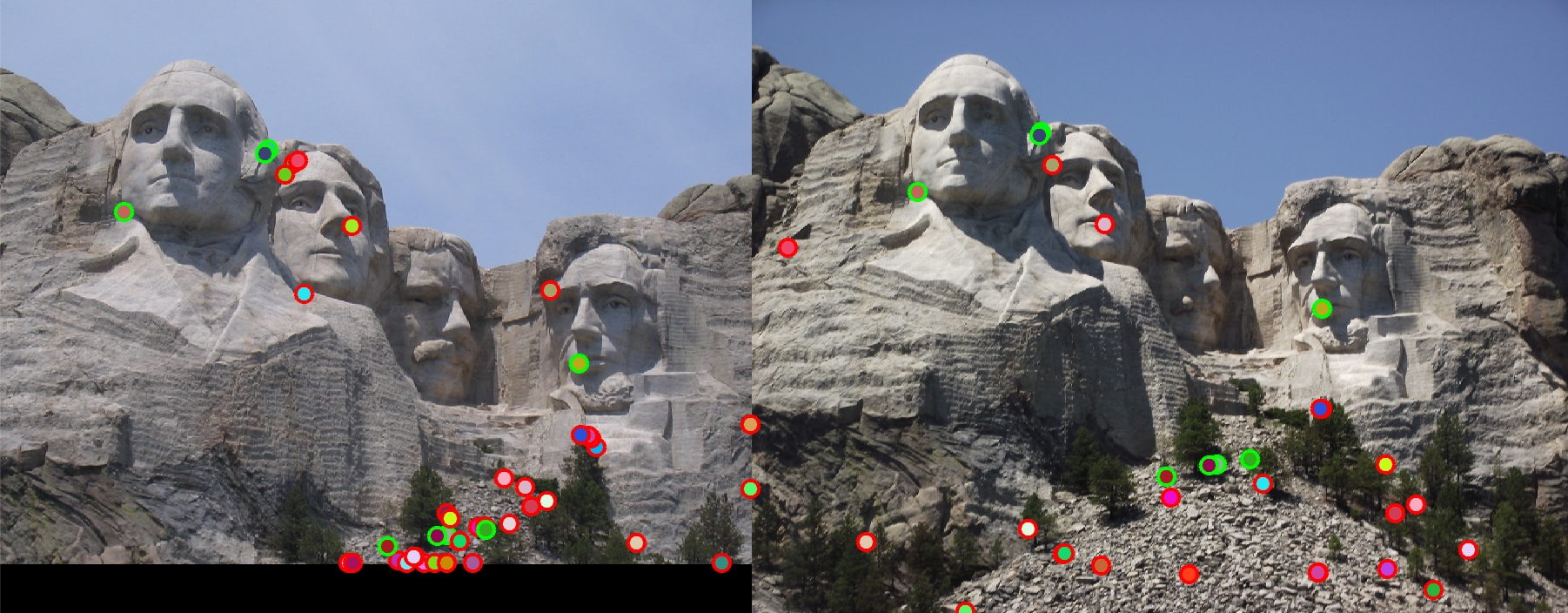 I used BWCONNCOMP to find connected components in thresholded binary image. To get better key points, I also toned the the standard deviation and size of the gaussian blur, alpha of corner function and the threshold. Changing standard deviation from 1 to 0.5 in gaussian filter produced me a better distribution of key points, and improved the accuracy by 10%. Changing the threshold from 0.0001 to 0.045 reduced the noice of sample, and improved the accuracy by 10%. Changing alpha of corner from 0.04 to 0.045 improved the accuracy by 5%.