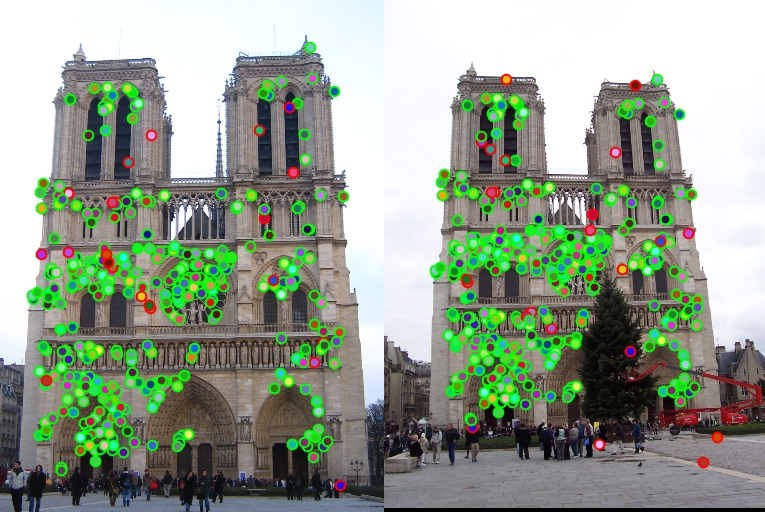 Fig.7. The results for Notre Dame with Lgaussian_Filter_Sigma setting as 2, 4, 8 respectively.