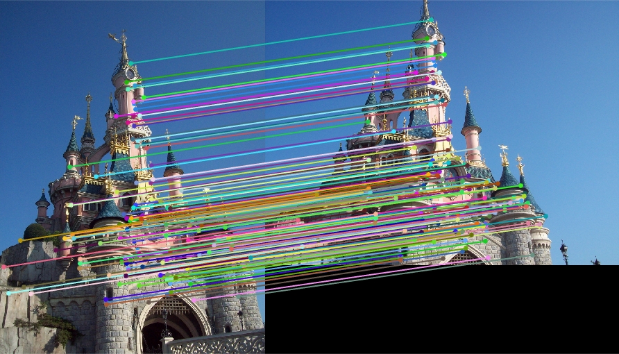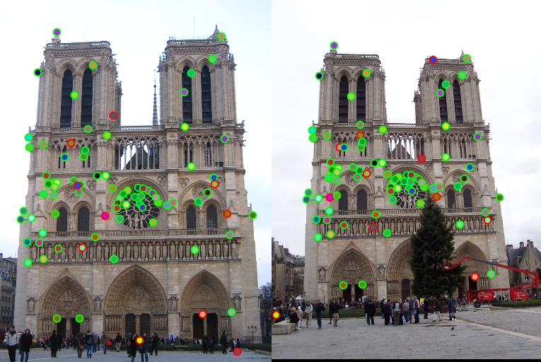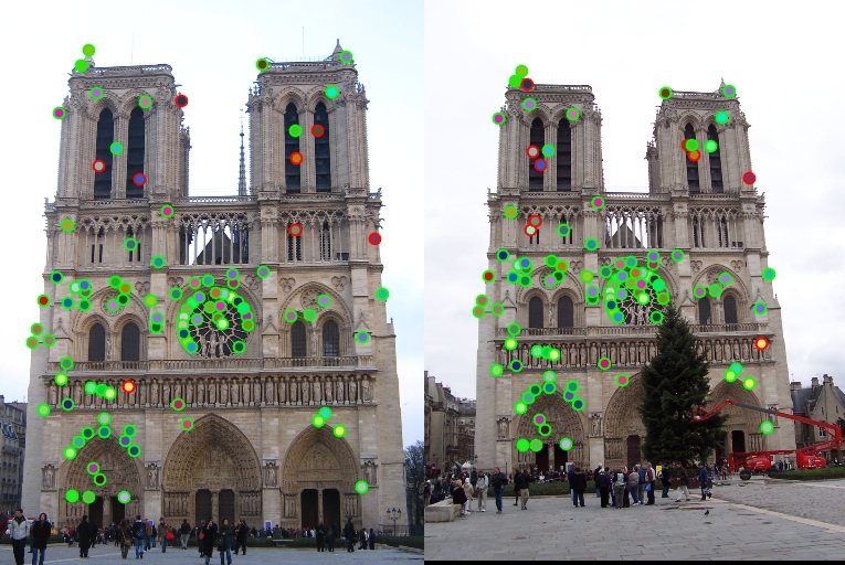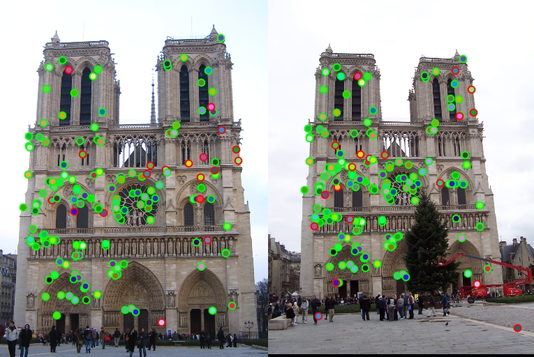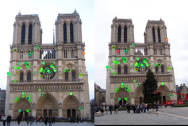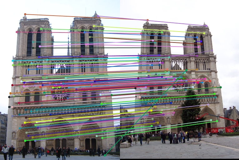 Fig.1. Example of the local feature matching results of Notre Dame pair of images.