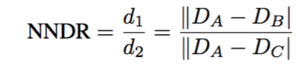 Equation 2. Nearest Neighbor Distance Ratio (NNDR)