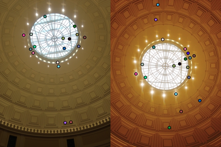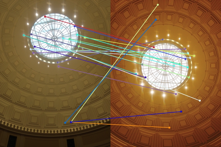 The results for this pair of images seem not quite good which may owe to the fact that many local features are very similar.