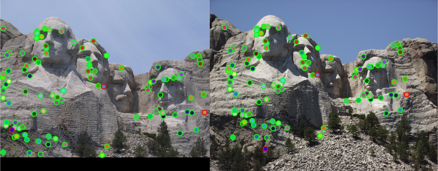 Fig.4. The results for Mount Rushmore - NNDR threshold: 0.7 and accuracy: 96.97 %