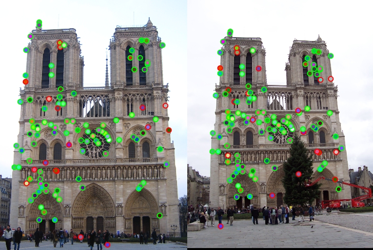 Fig.3. The results for Notre Dame - NNDR threshold: 0.8 and accuracy: 90.35 %.