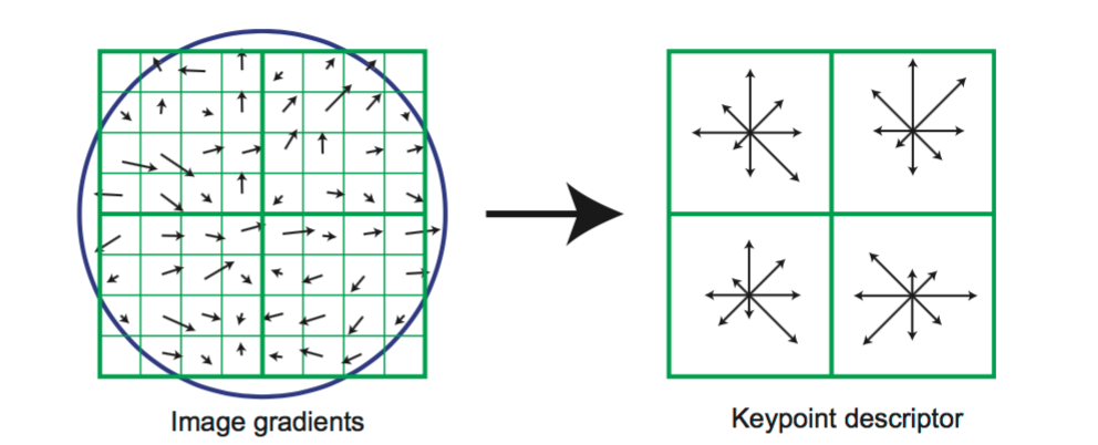 The code in this part comes from get_features.m where OrientationHistoBin.m will be called. The features using Scale invariant feature transform (SIFT) are formed via computing the gradient at each pixel in a 16*16 window around the detected interest point and a Gaussian fall-off function is used to reduce the effect of gradients far from the center, as displayed in the above Fig. 2. Then, the 16*16 window is divided into various 4*4 windows. The code for this is displayed above. In each of these windows, through adding the weighted gradient value to one of the eight orientation histogram bins, a gradient orientation histogram comes into being. The code for looping through 8 bins is as follows: