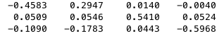 This required setting the value of m34 to 1 and solving the regression for the rest of the values. After multipling the matrix by a scalar to scale the matrix to the scale desired for the assignment, I got the following matrix: