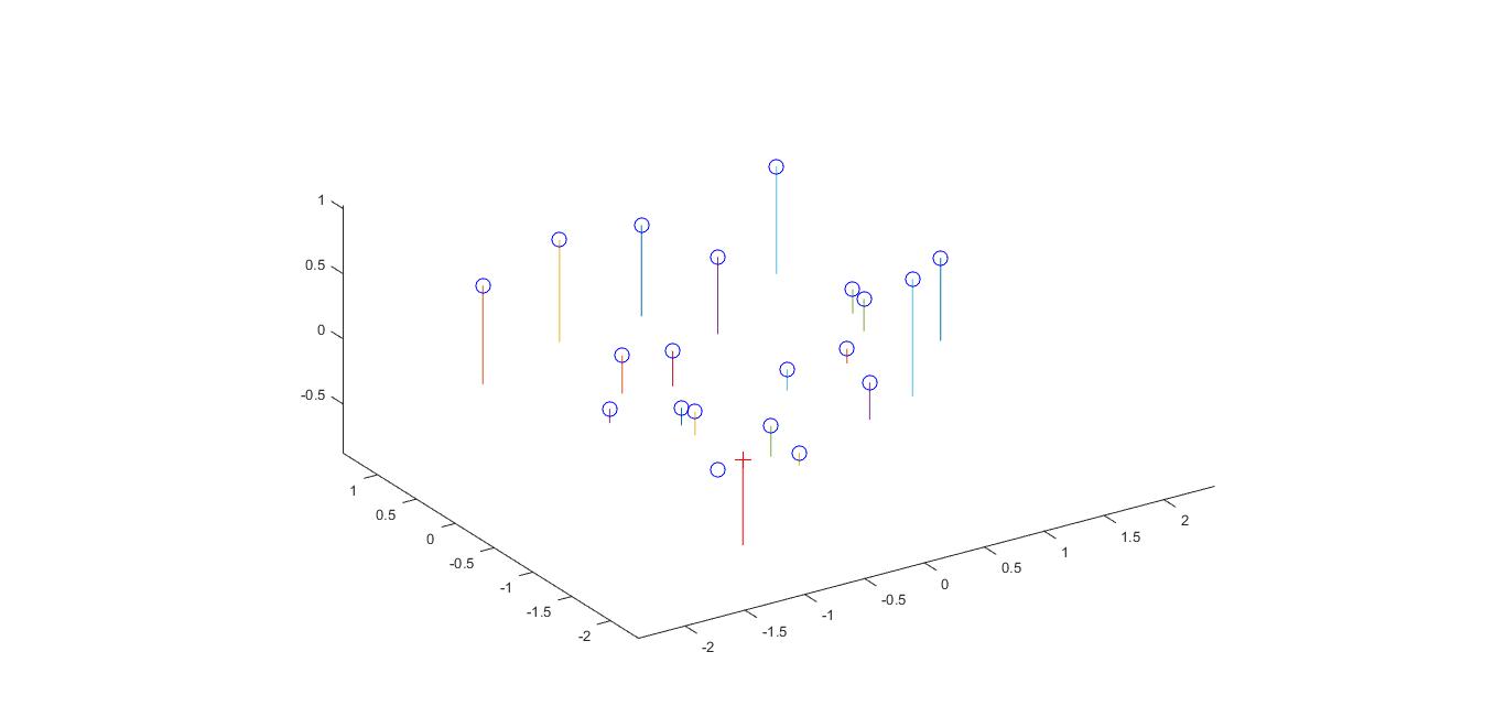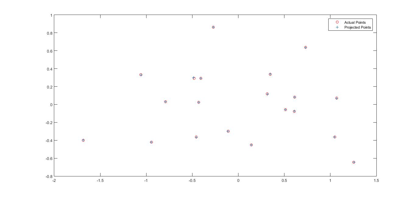 Image 1 Showing the position of the actual points and the points obtained after calculating them using the projected matrix. Image 2 Showing the computed camera centre. |