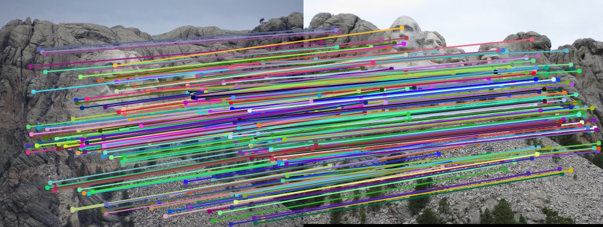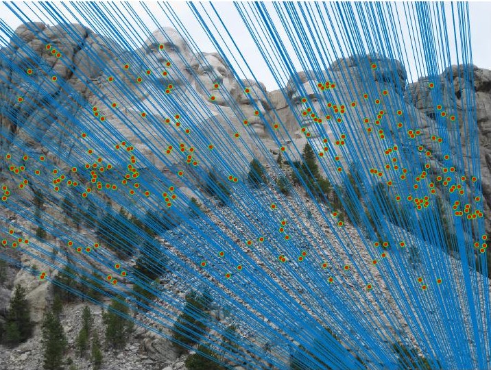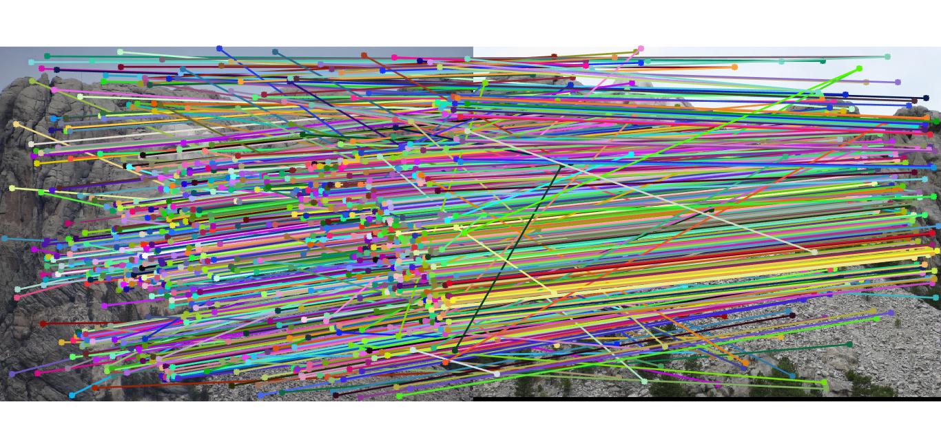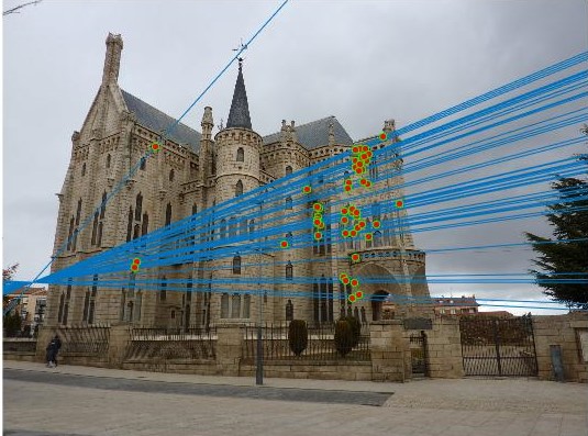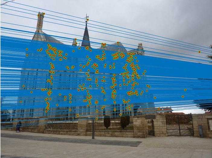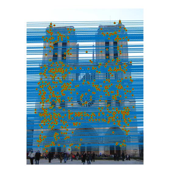 Image 1 showing the results of the correspondences before performing the RANSAC. Image 2 showing the results of the correspondences after performing the RANSAC. |
