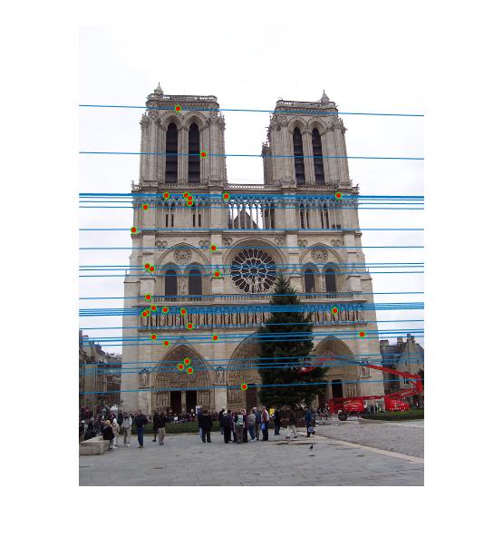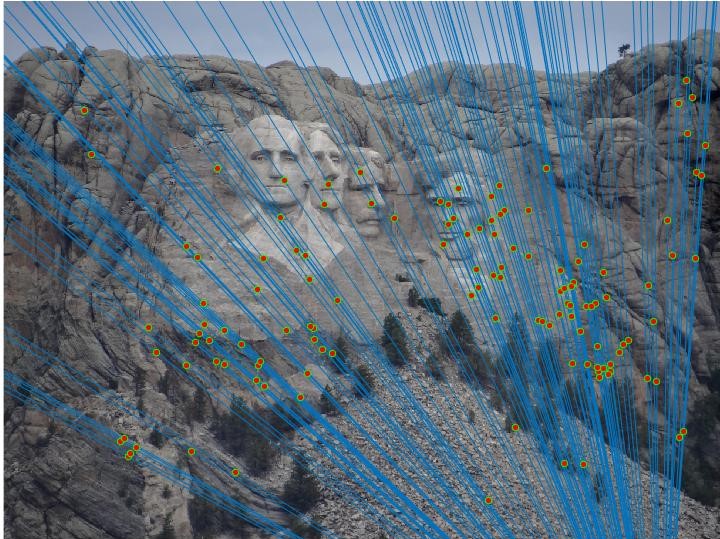 Image 2 Showing the epipolar lines calculated using the Fundamental Matrix for Base Image Pic_b. |