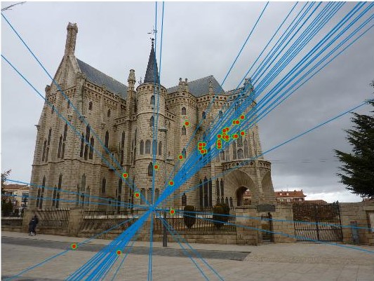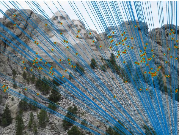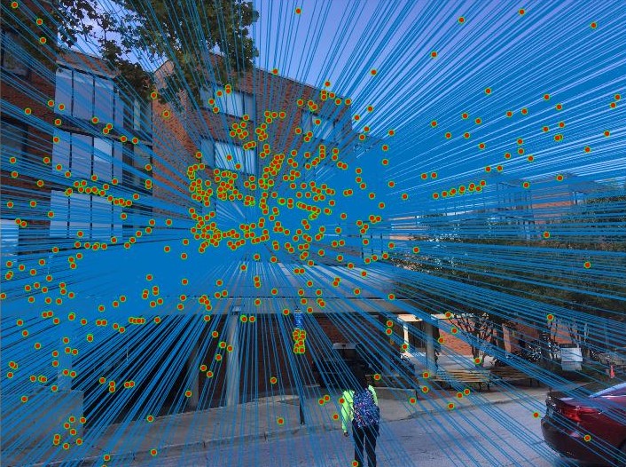 Image 3 showing the epipolar lines and Image 4 showing the epipolar lines in the same image but taken from a different angle. Only the epipolar lines corresponding to the top 30 inliers is shown in the image. |