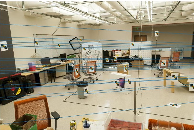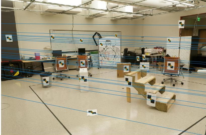 As can be seen the lines like the through the paper on the floor and the one at top of the ceiling did not pass through the makred points and were off by a margin. But in the image on the right, the results have improved.
