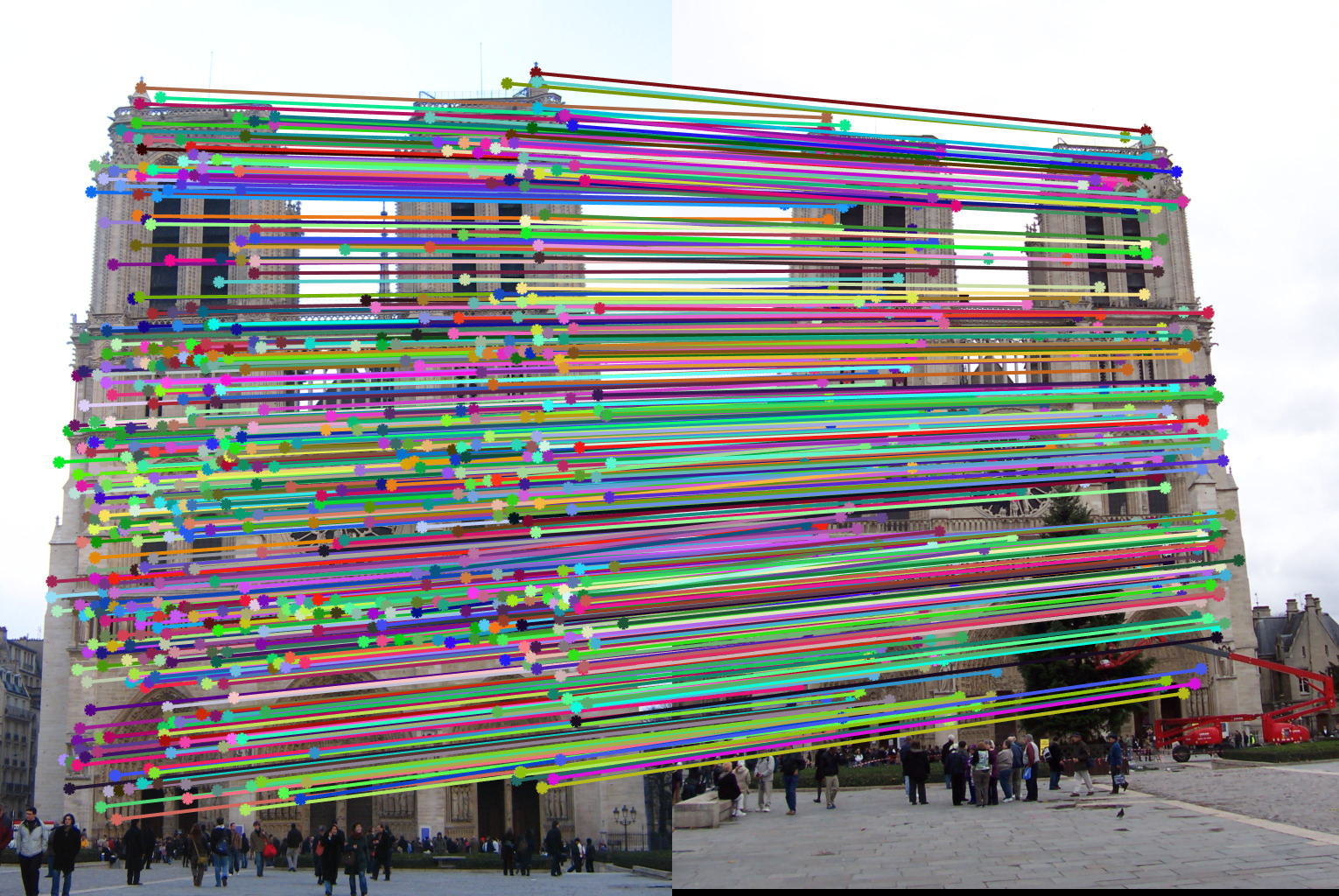 Notre Dame: Found 851 possibly matching features. Good.