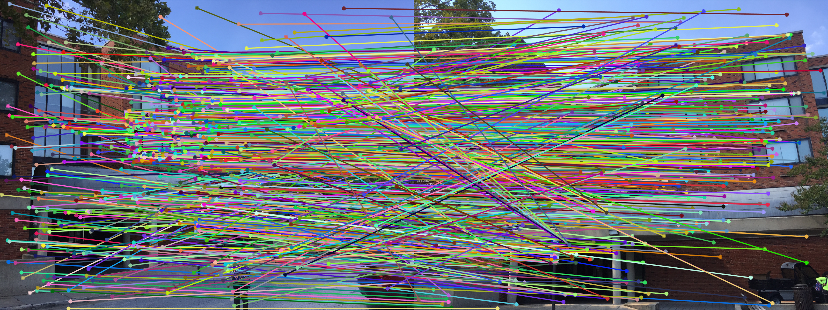 The algorithm doesn't perform so well against the remaining two pairs. The fundamental matrix can be calculated incorrectly due to the following reasons: