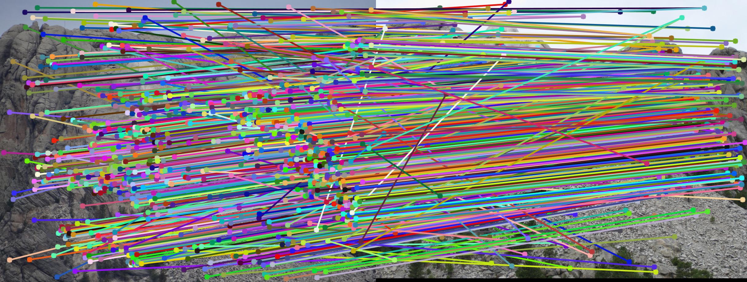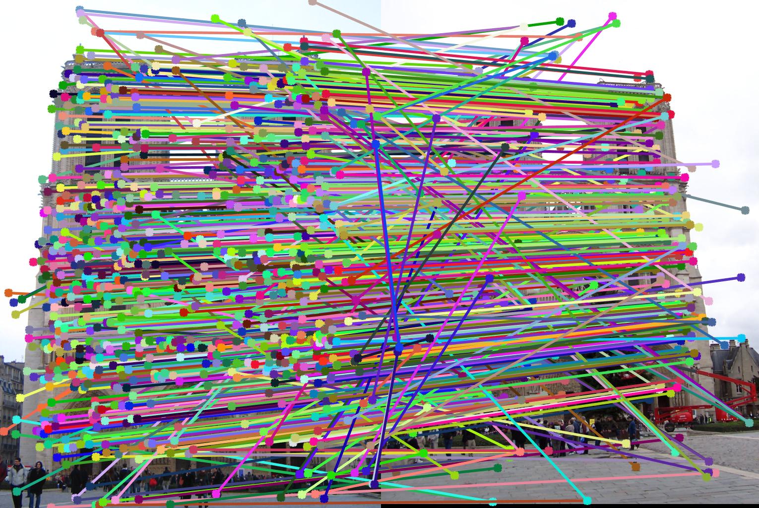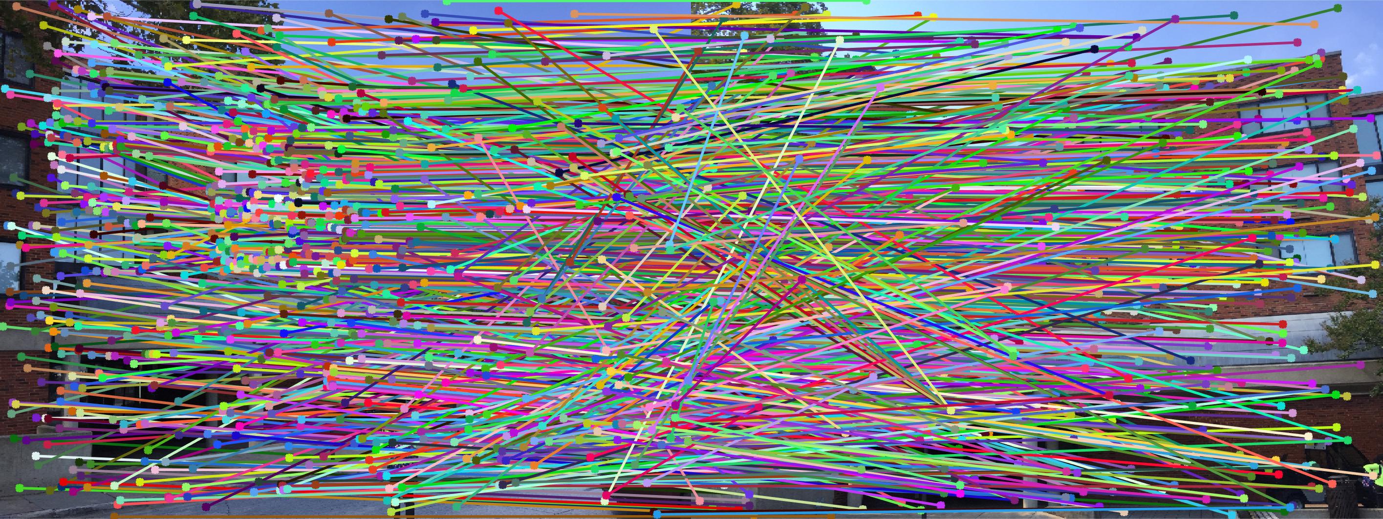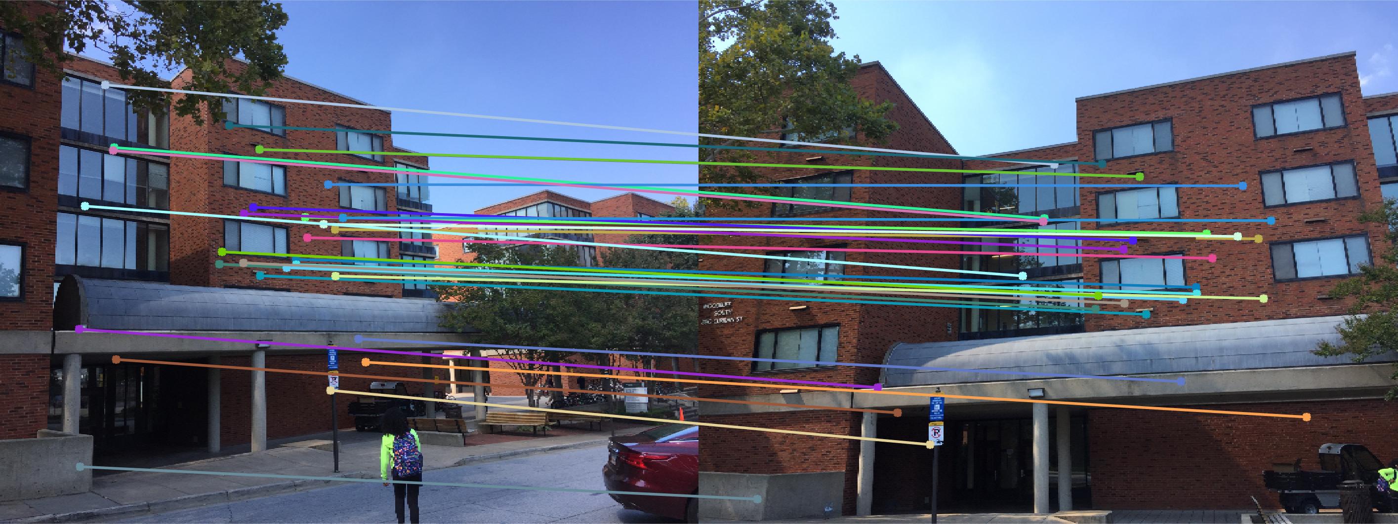 This by far, performed the worst out of all of the images. There were some very obvious errors such as some matchings in the sky, but other than that, it got a majority of the matchings correct. This is most likely due to the uneven resolution settings between the two images, which thus makes it very hard for the two images to be accurately matched upon.