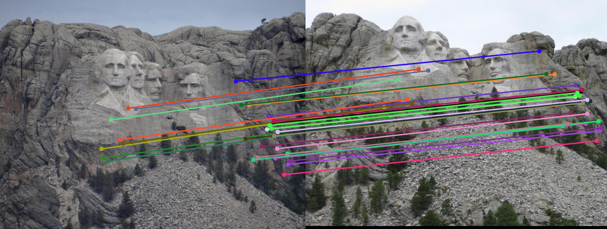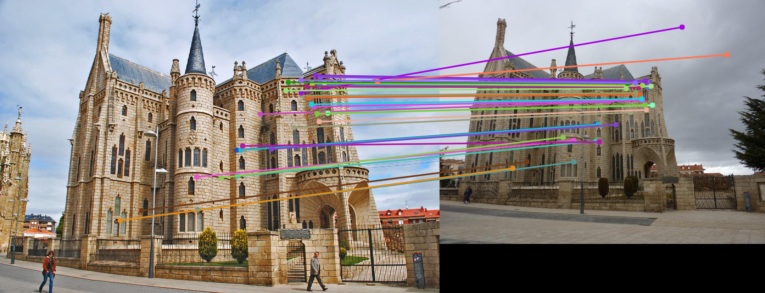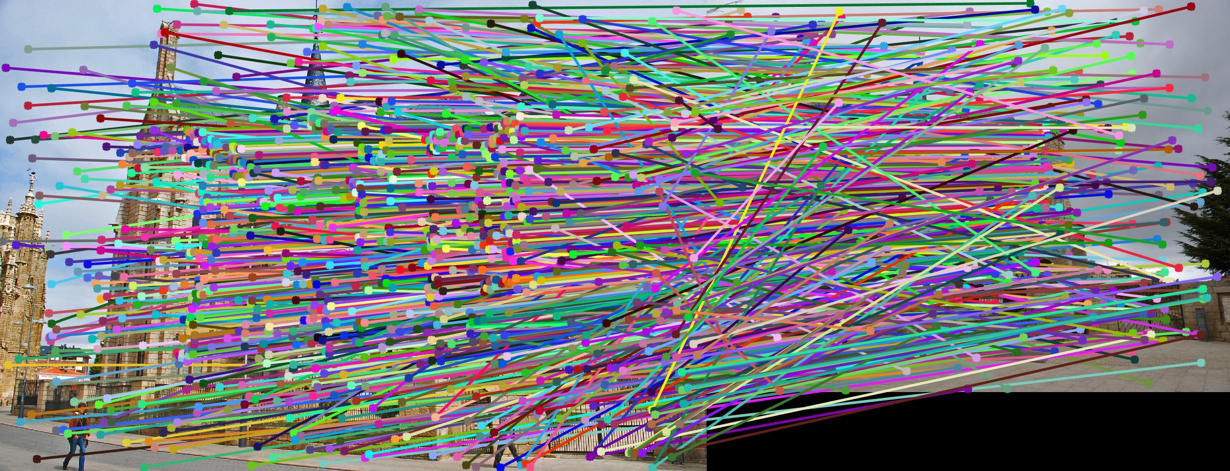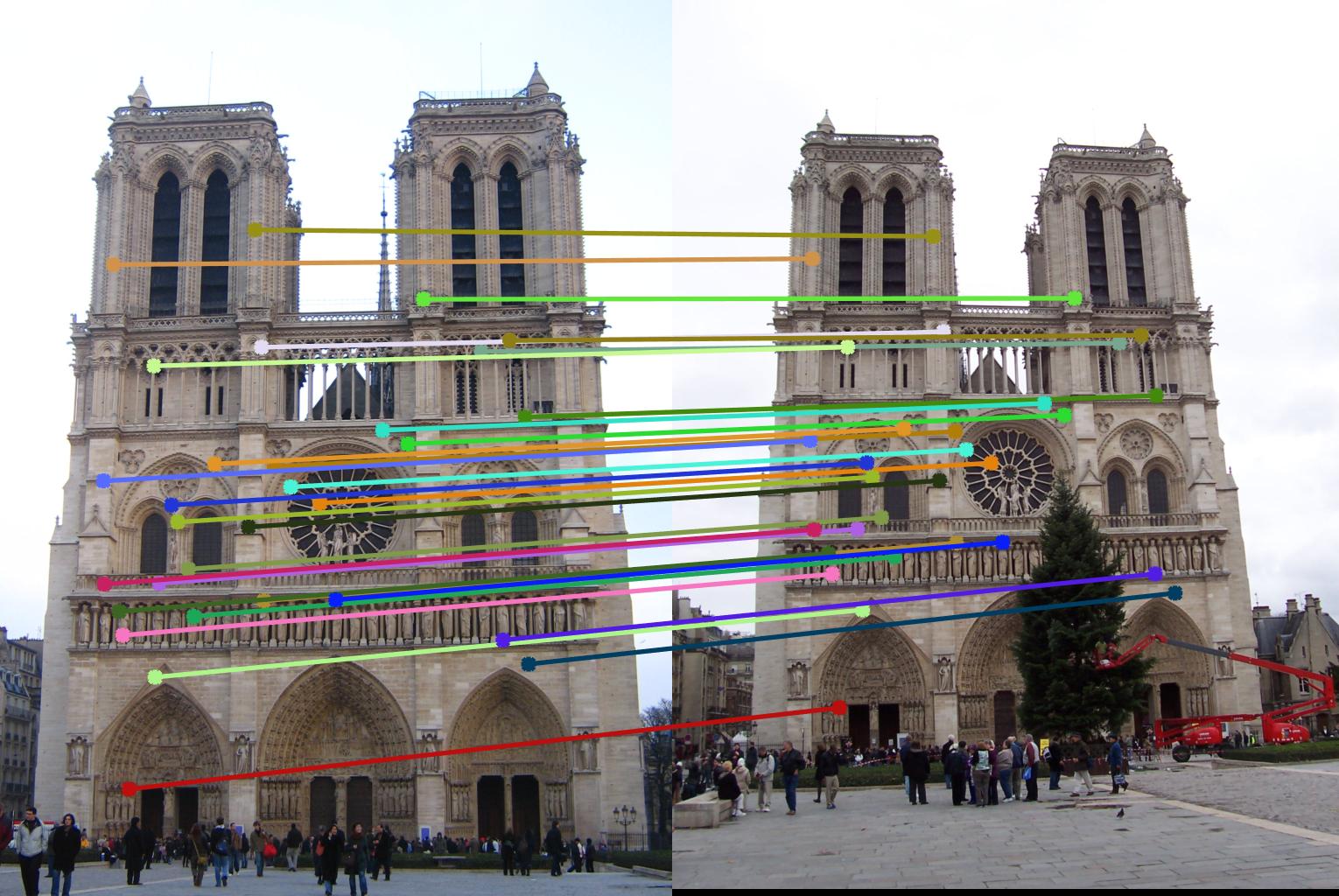 This by far, performed the worst out of all of the images. There were some very obvious errors such as some matchings in the sky, but other than that, it got a majority of the matchings correct. This is most likely due to the uneven resolution settings between the two images, which thus makes it very hard for the two images to be accurately matched upon.