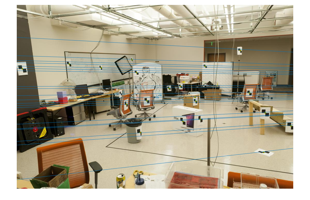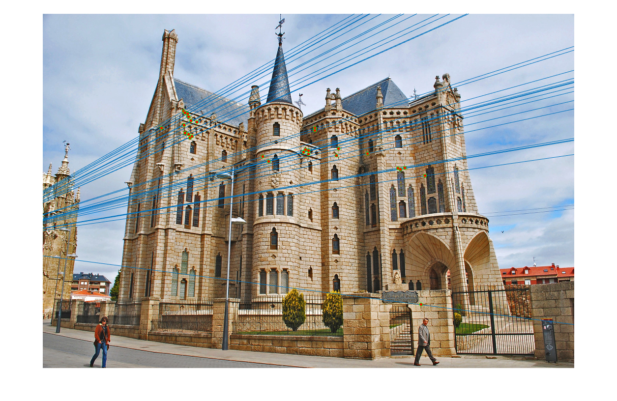 Fig.7: Epipolar lines for the fundamental matrix Ff in full rank. |