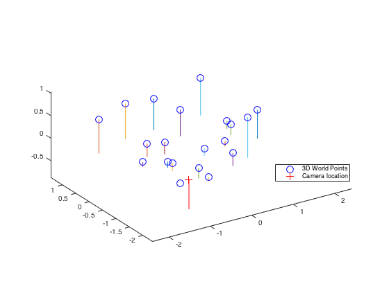 Fig.5: Estimated camera center at (-1.5127, -2.3517, 0.2826) with respect to the normalized 3D point coordinates.