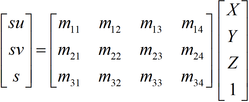 The goal is to compute the projection matrix that goes from world 3D coordinates to 2D image coordinates. Recall that using homogeneous coordinates the equation for moving from 3D world to 2D camera coordinates is as in Figure-1.