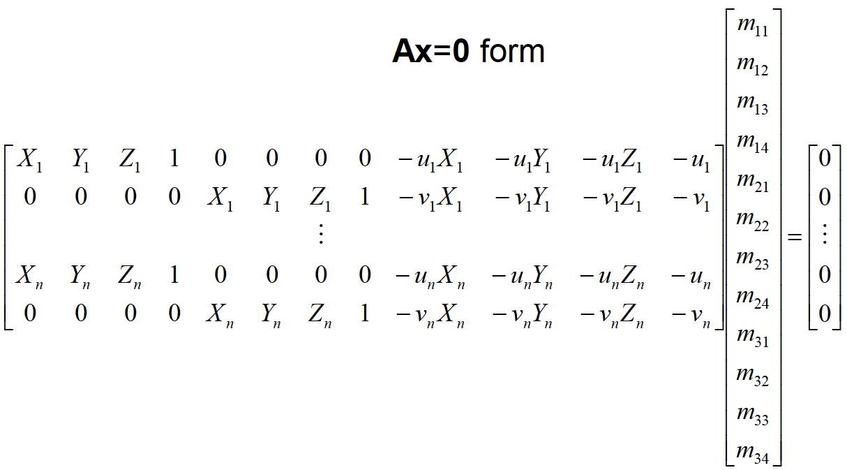A=zeros(nPoints*2,12);% Create the Matrix A where in Ax=0.