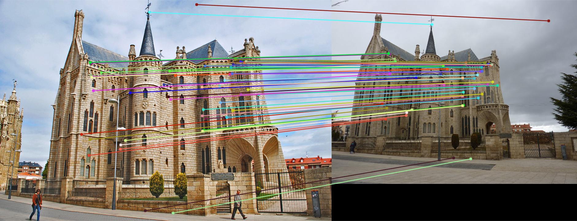 Of the top 50 matches, most of these matches also seem to be accurate. VLFeat's original matches also seemed to be fairly accurate for this pair.