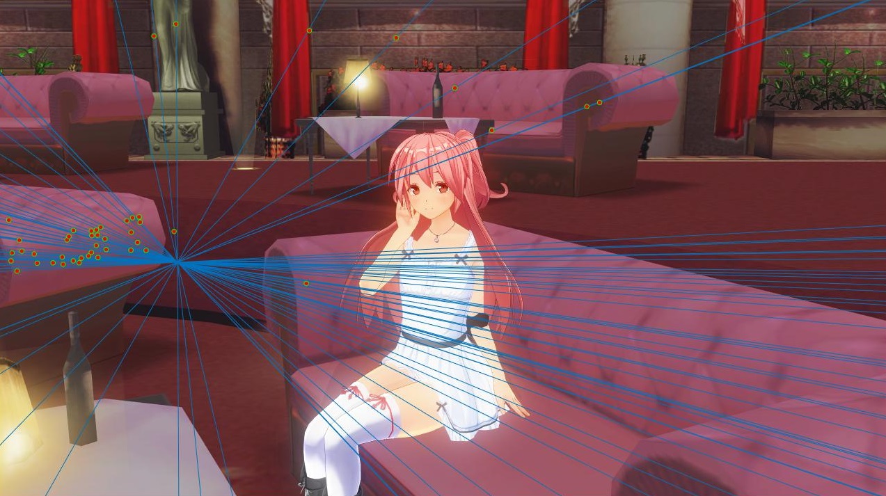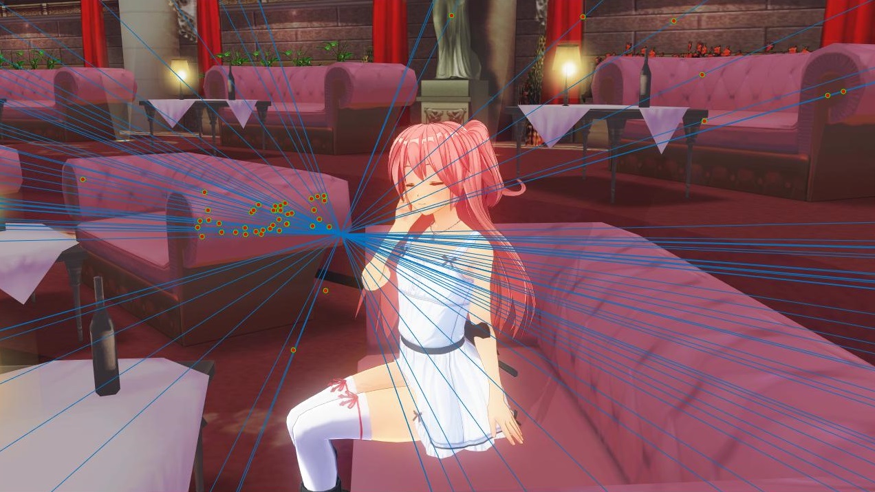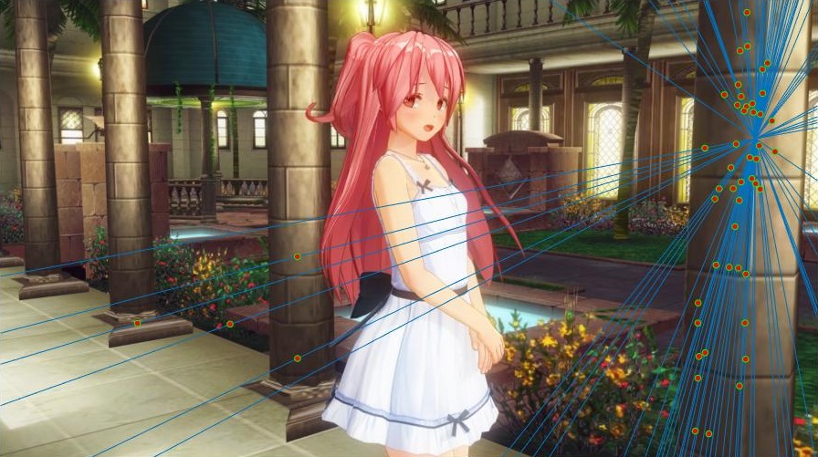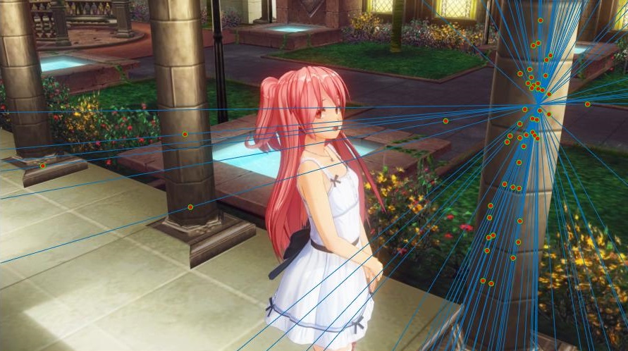 The 3DCG worked well too, barring one blatantly obvious error. Most of the points detected were from the poles (structural beams), and it did manage to match up most of them correctly.
