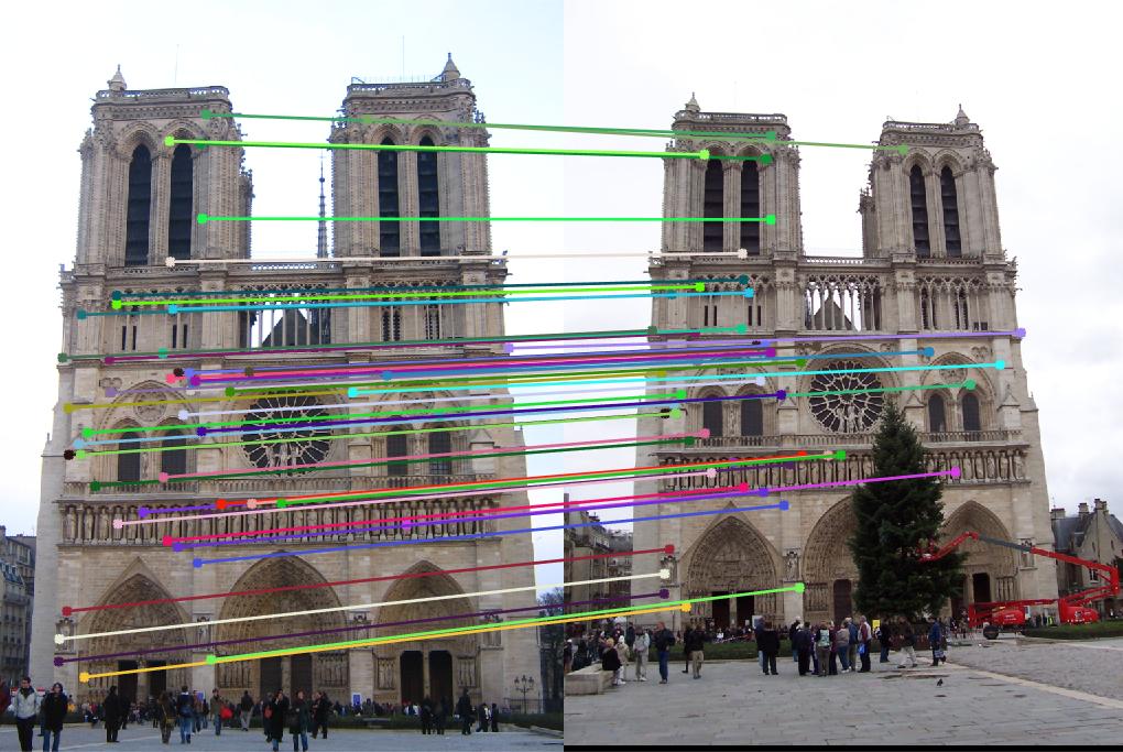 This one did pretty well overall, although the epipolar lines are not what I what have expected - something more similar to Woodruff was expected. But since most were non-man made images, it may have been difficult for it to recognize.