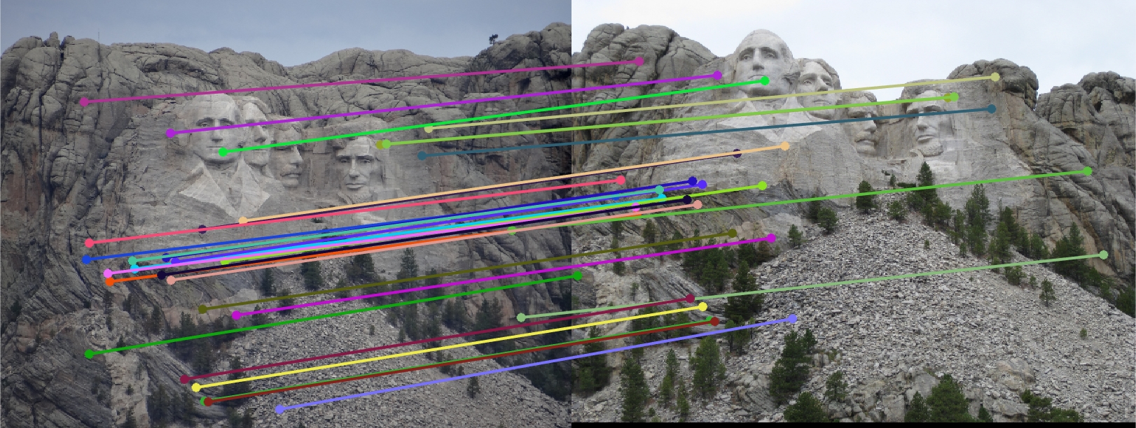 The configuration for this image is the same as for Mountain Rushmore, and we can observe from the picture that the accuracy is good as well. This time we got 538 inliers.