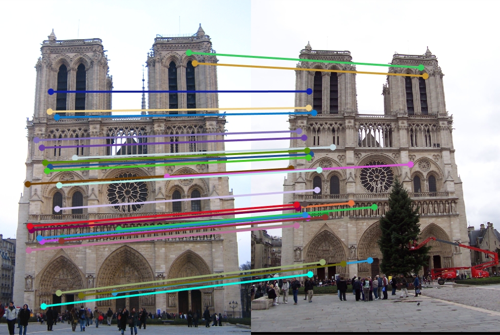 Here are some of the results obtained: * images show the 30 best inliers, i.e. pairs of point with the lowest distance error.