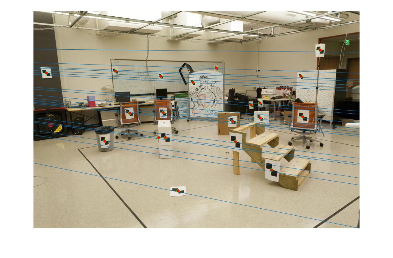 Illustration 5. Pair of images with their corresponding epipolar lines drawn.
