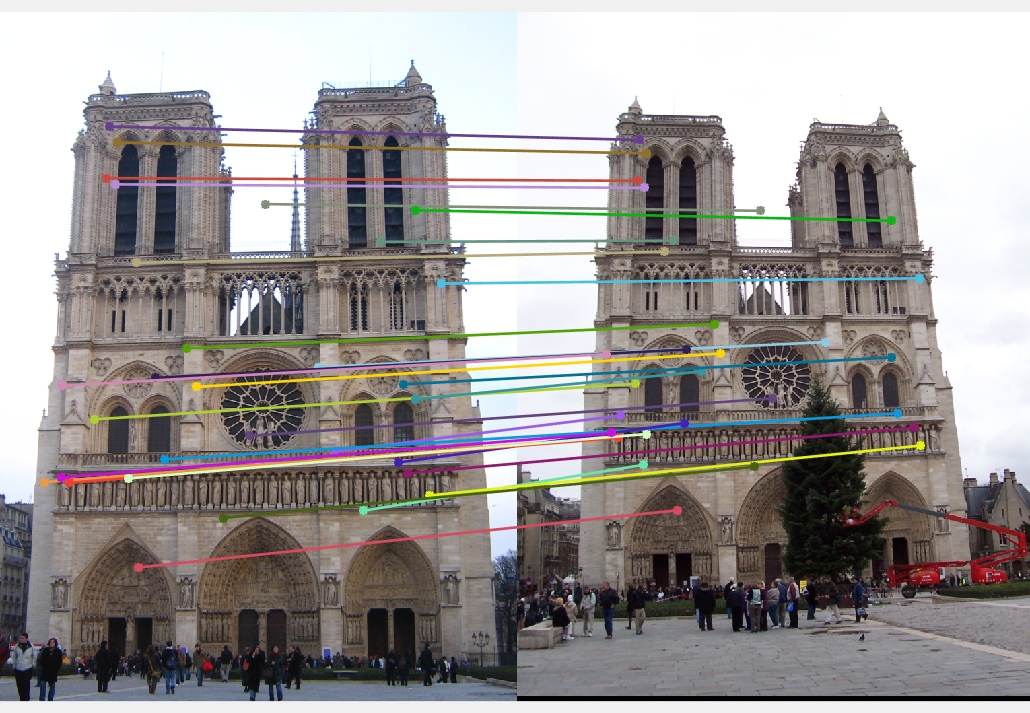 Fundamental Matrix helps to estimate the mapping of points in one scene to the epipolar lines in the second scene. Given the corresponding 2D coordinate points in two images, the fundamental matrix can be calculated as