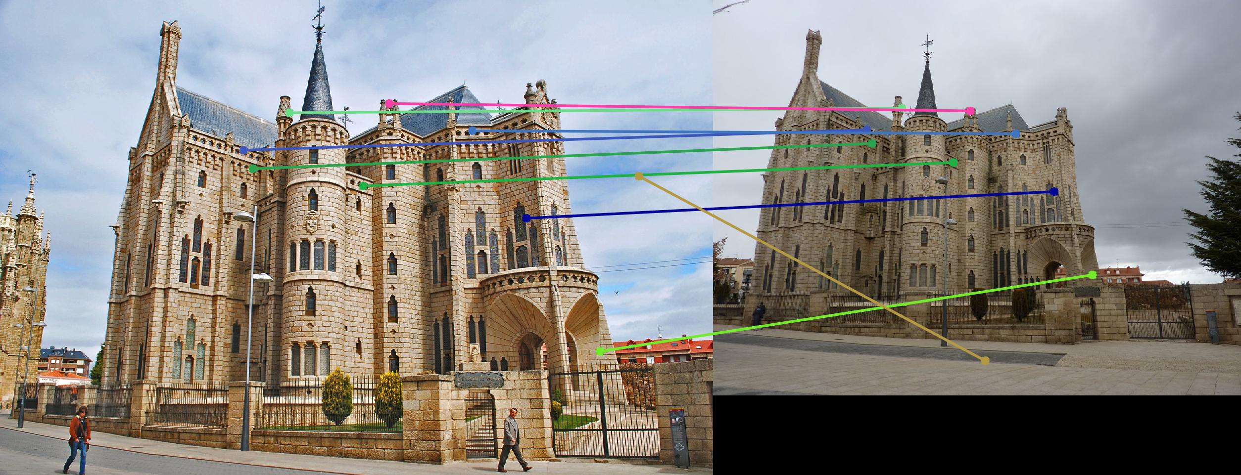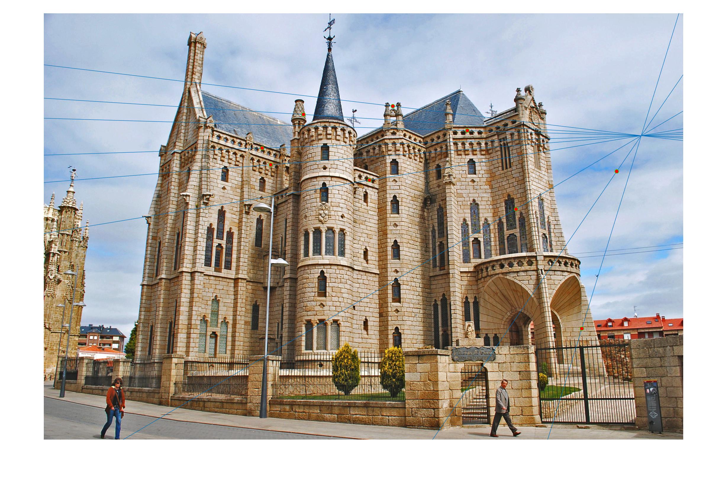 Fig. 4: Matched features and epipolar lines for Gaudi