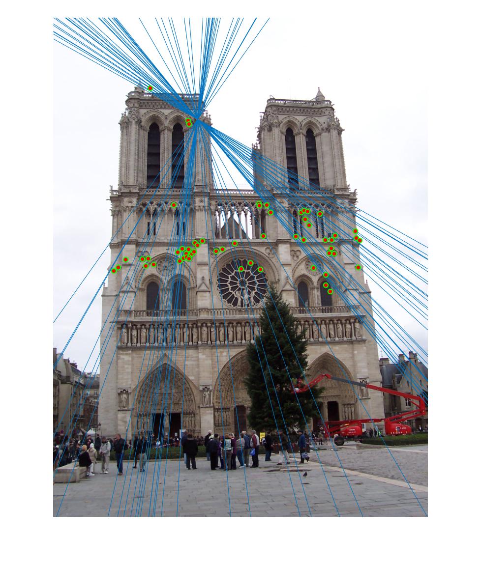 This linear transform let's us normalize all of the corresponding points in each image. After estimating the fundamental matrix we can then denormalize it using F = bTFaT. Where bT and aT are the linear transforms for image A and image B.