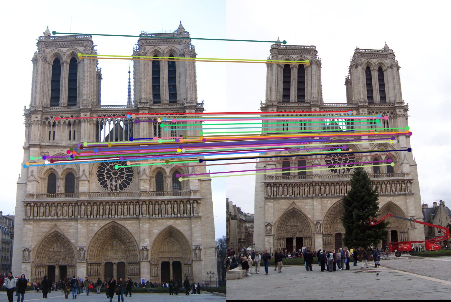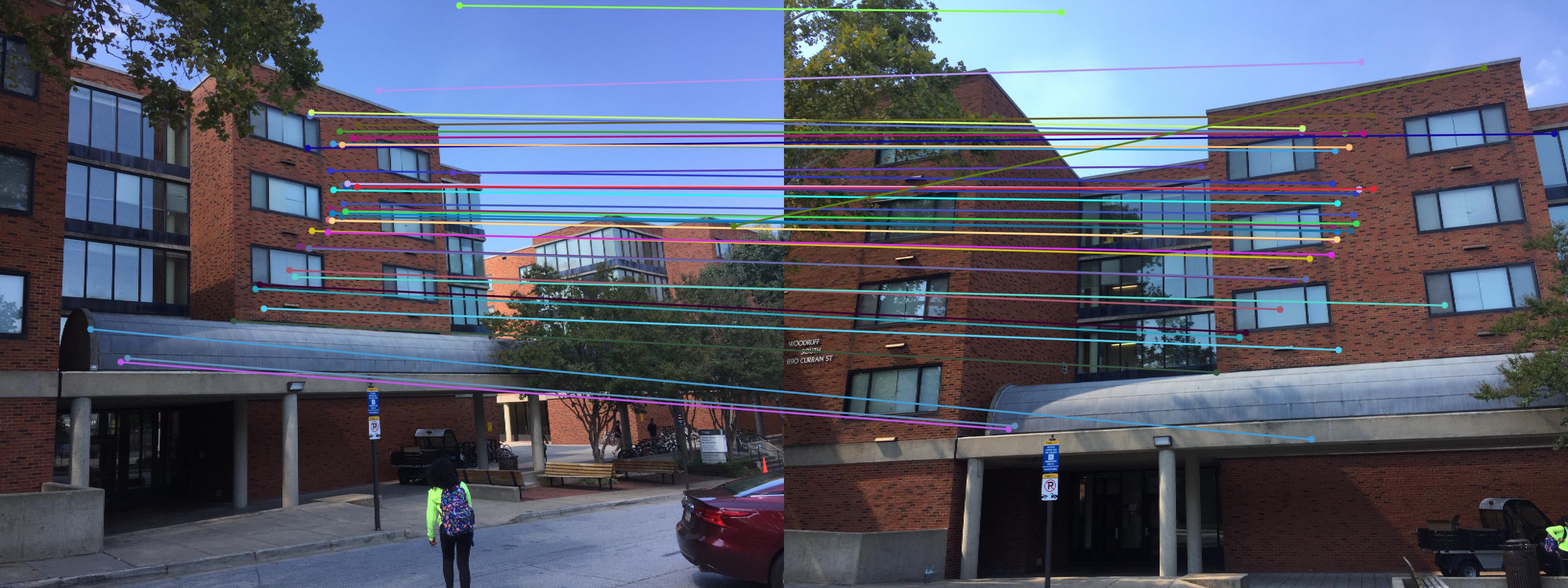The final part was to attempt to estimate the fundamental matrix of two images using correspondances produced by a SIFT function instead of ground truth points. It is much more likely that these points are not as good as the ground truth points and given 8 points we may not calculate a very good fundamental matrix. To help solve this we use RANSAC. Given a list of correspondances we will: